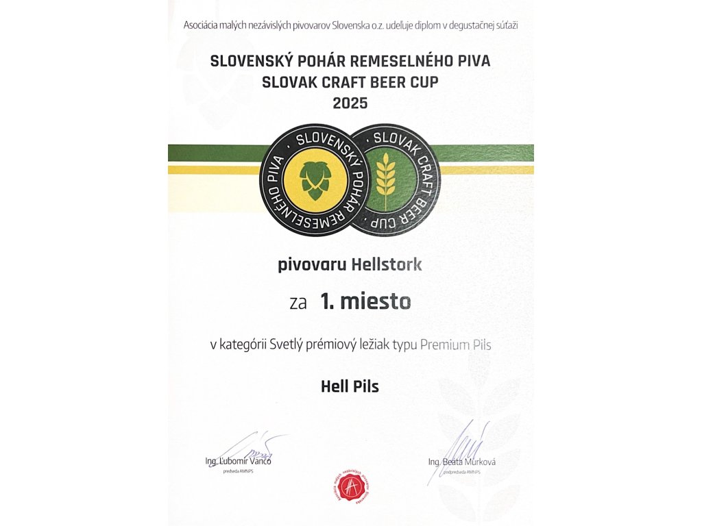 1.miesto v kat. Premium Pils - SLOVAK CRAFT BEER CUP 2025